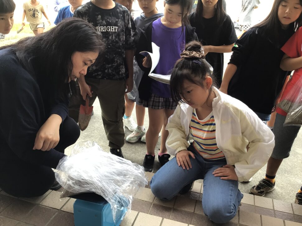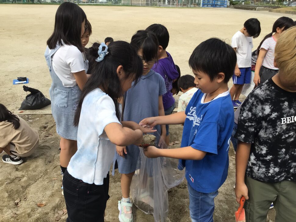 3年生が何やら砂場で授業をしていました。覗いてみましょう。