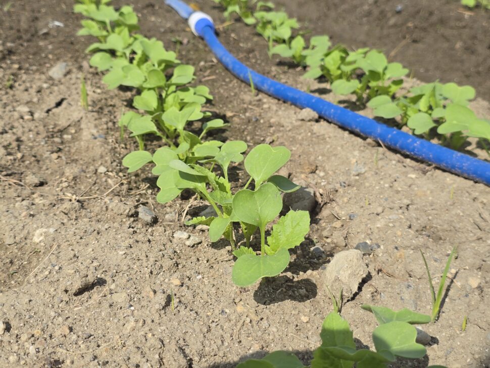 学校園の大根が発芽し、芽もどんどん大きくなってきました。