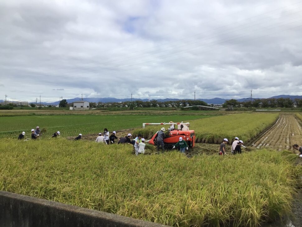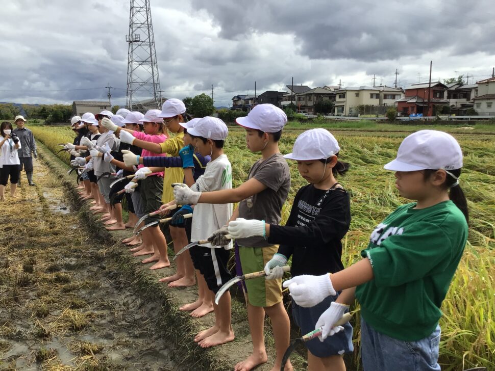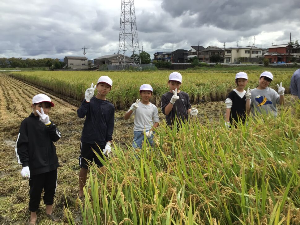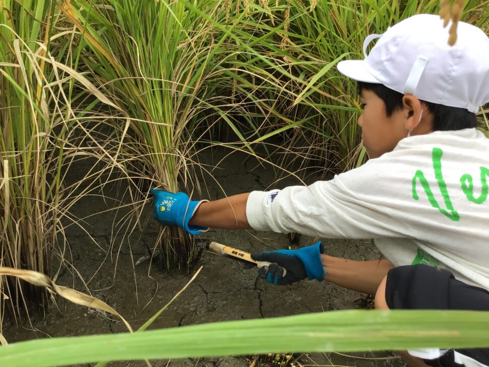 春に植えた稲は暑い夏を越えたくさんの金色に輝く稲穂をつけました。猛暑に負けずに育った稲たちはとても立派でした。田植えを体験させていただきここまで育ててくださった横須賀さんをはじめたくさんの方々に感謝をして収穫をしました。