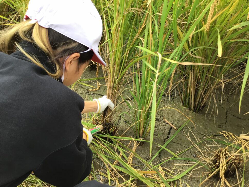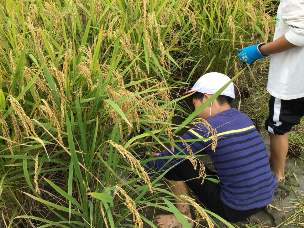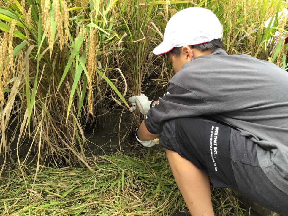 どろどろになりながら、一つ一つ丁寧に一生懸命収穫しました。全員で頑張ってもなかなか進みません。やはり手作業での収穫は大変です。いつもお米を作ってくださる農家の方々の大変さを少し感じることができたようでした。