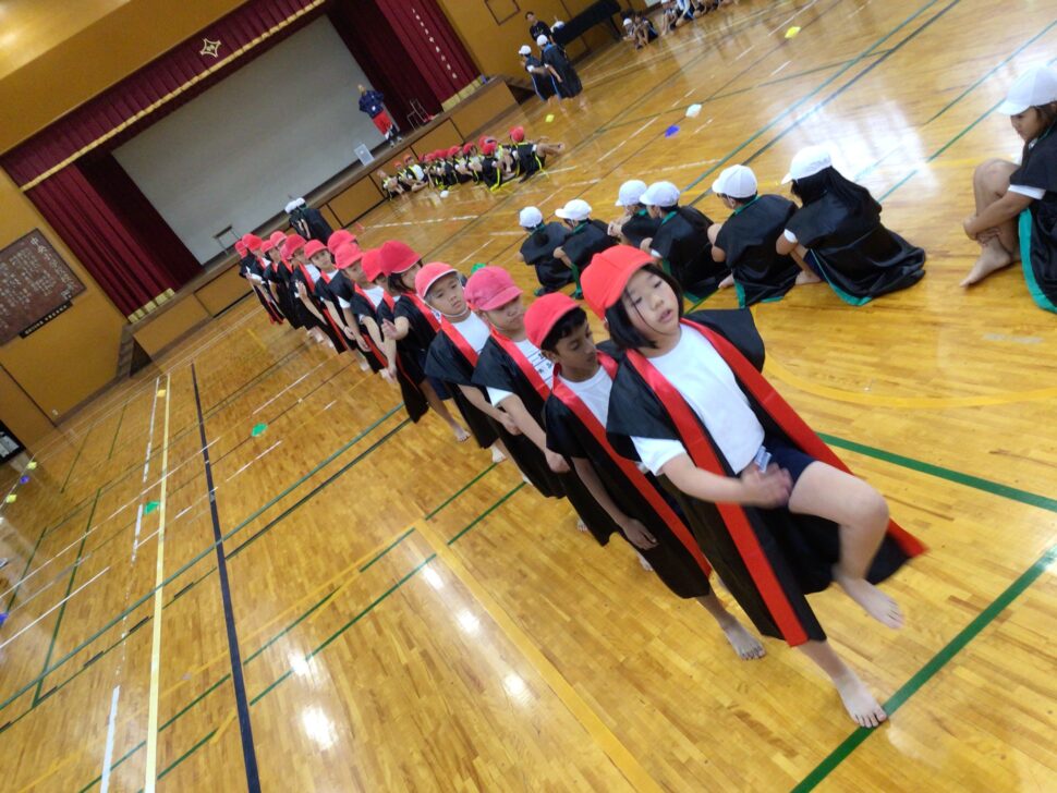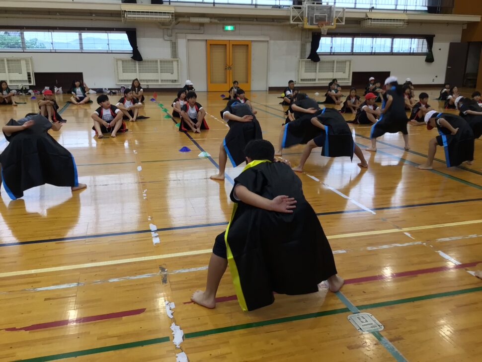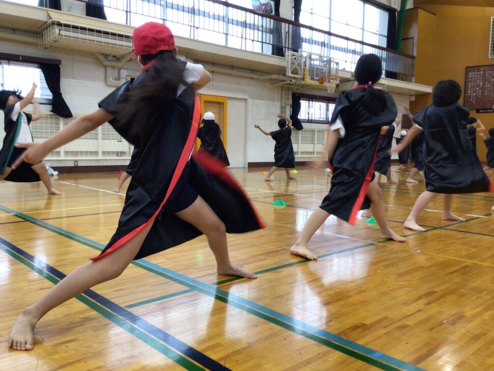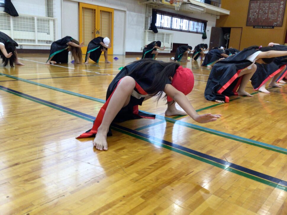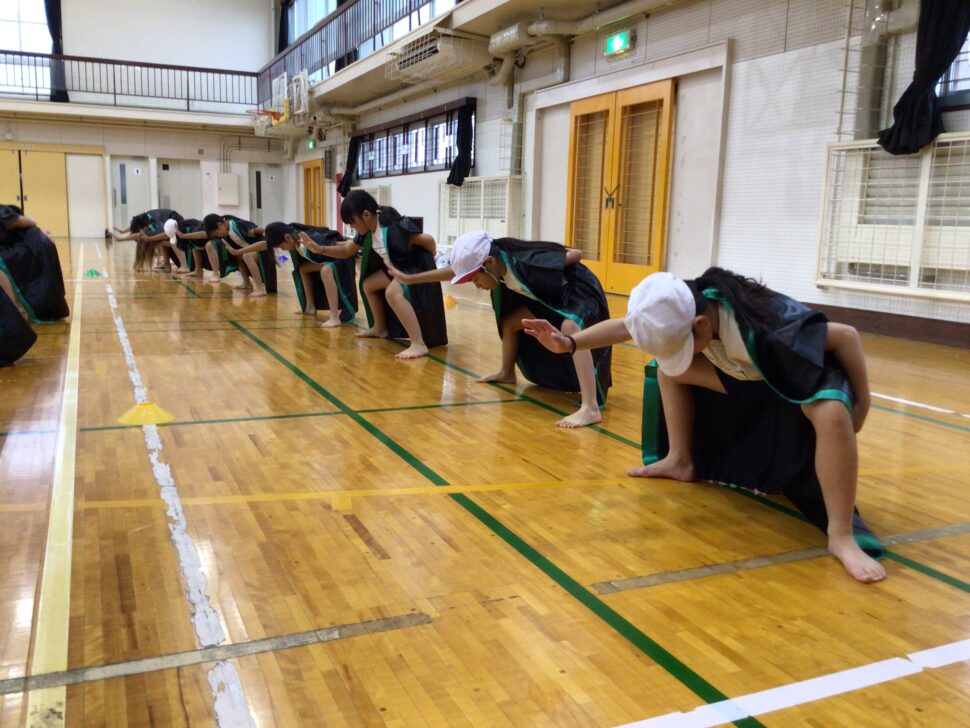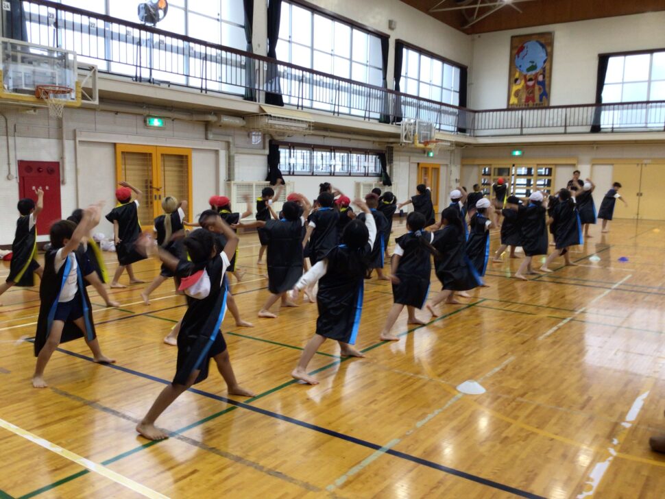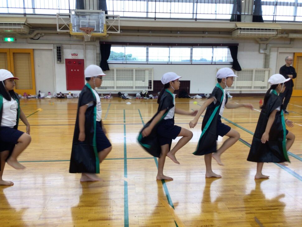 体育館中に響き渡る大きな声で練習をしている3、4年生。
