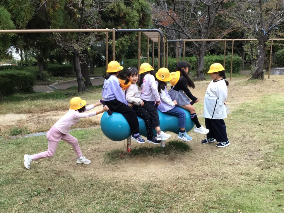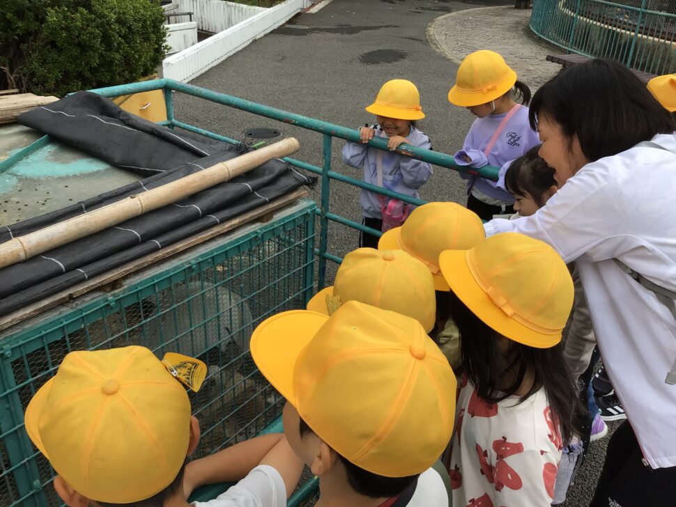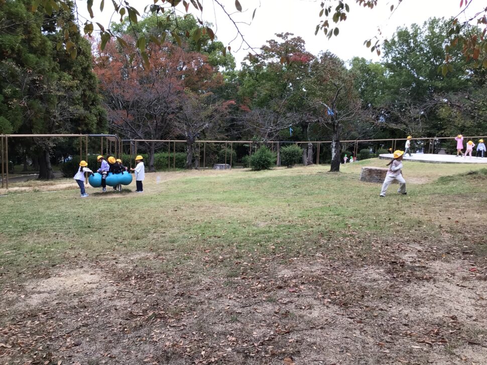 秋みつけの後は、公園で仲良く遊んだり、こども動物園の見学をしました。クラスの友だちと仲良く遊ぶのはもちろん、一緒に来ていた他の保育園のお友だちと仲良く遊んだりしていました。