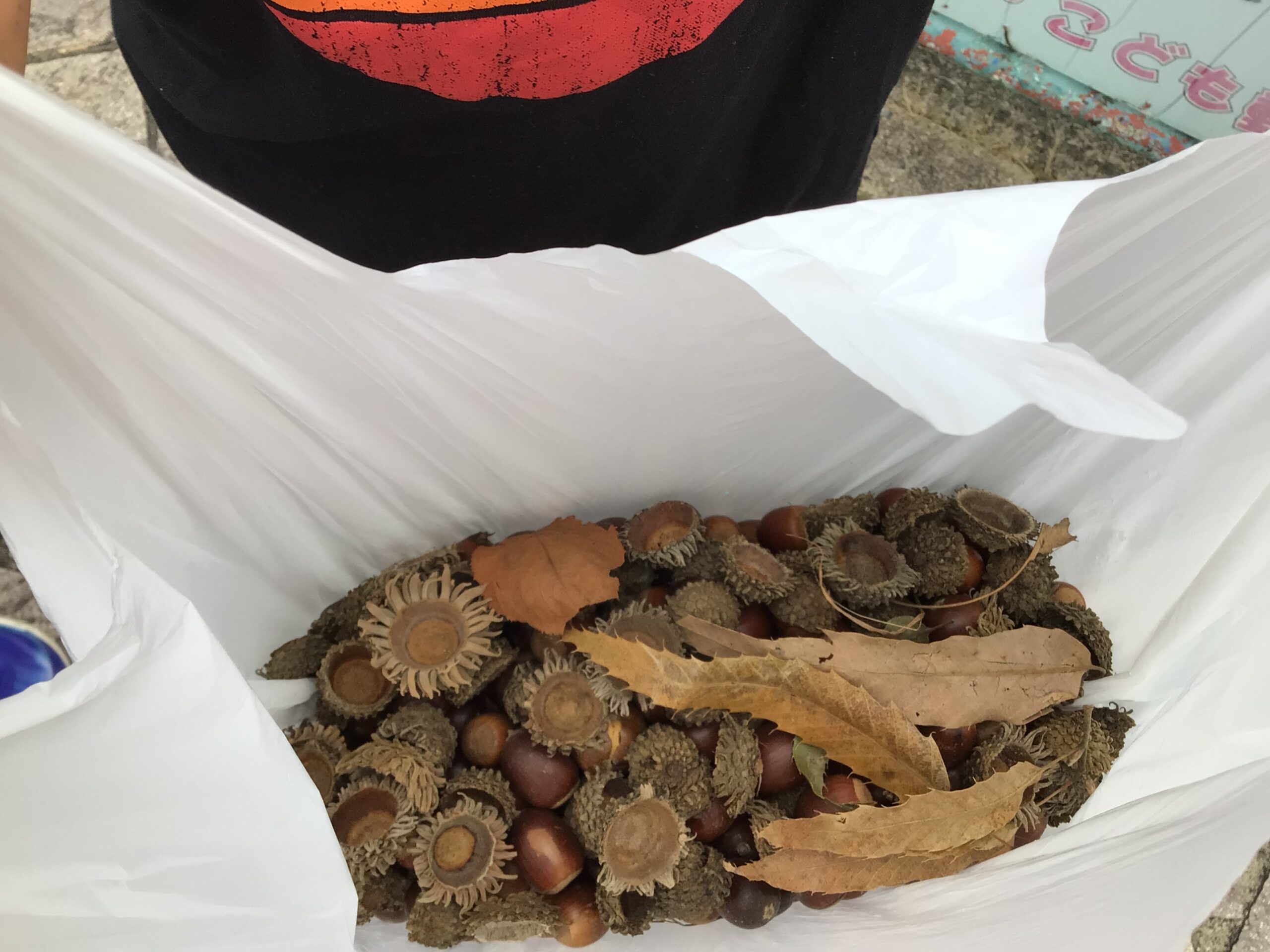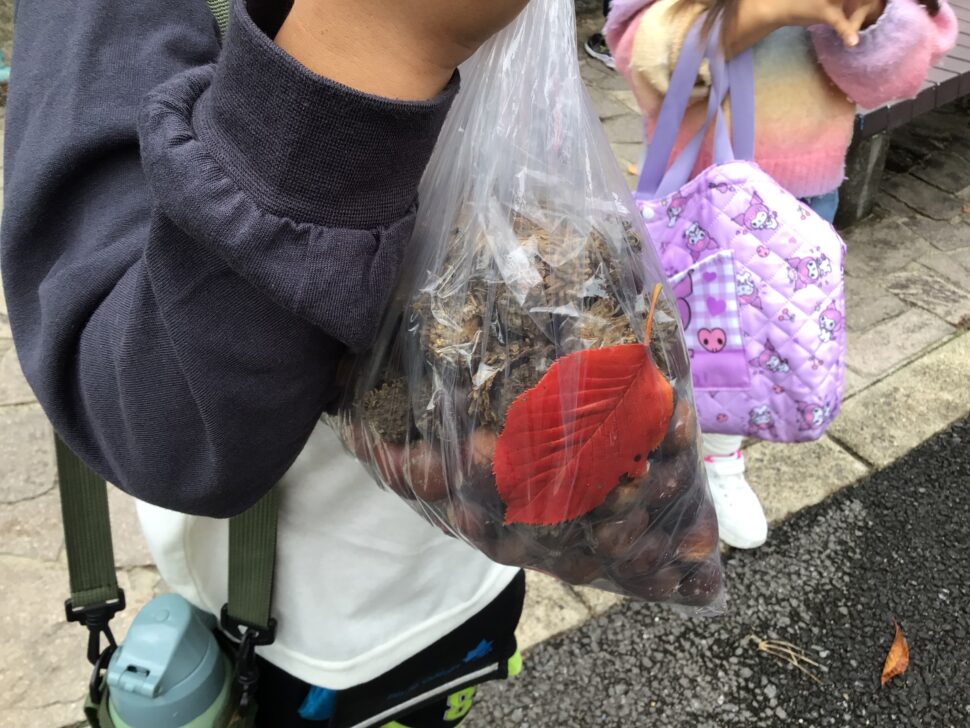 秋のさくら公園にはどんぐりがいっぱい!袋いっぱいになるほど集めました。