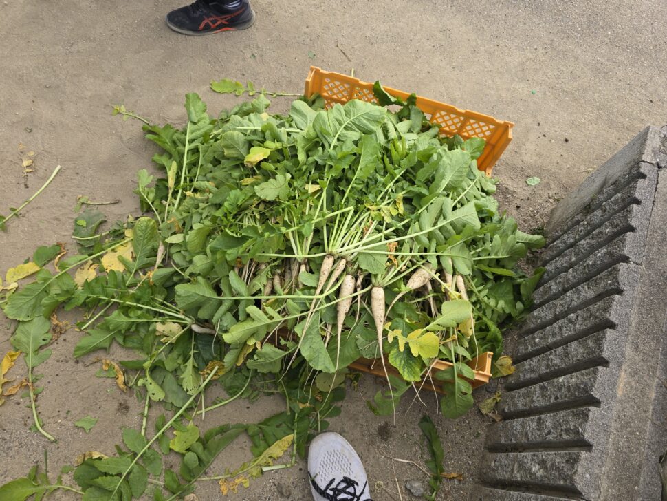 まずは、畑の大根の間引きを行いました。
