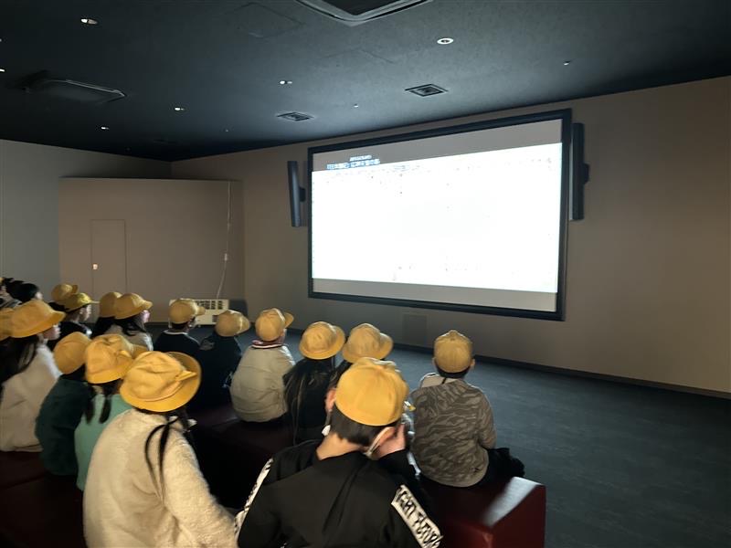 1階のシアタールームで「漢字ってなに?」という映像を見せてもらいました。映像では、漢字の三要素(形・音・意味)がどのように結びついてできたかという話が分かりやすく紹介されており、子どもたちはじっと耳を傾けながら、時折「へえ!」と顔を輝かせていました。