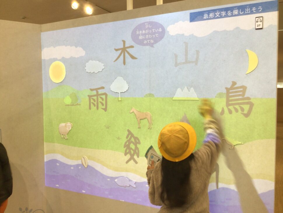 その後は、巨大な「漢字5万字タワー」の中から自分の名前の漢字を探したり、タッチパネル式のカルタで部首を組み合わせて漢字を完成させたり、自分の体を使って漢字の形をつくったりするコーナーに挑戦。まるでテーマパークのような展示に、子どもたちは笑顔で夢中になっていました。