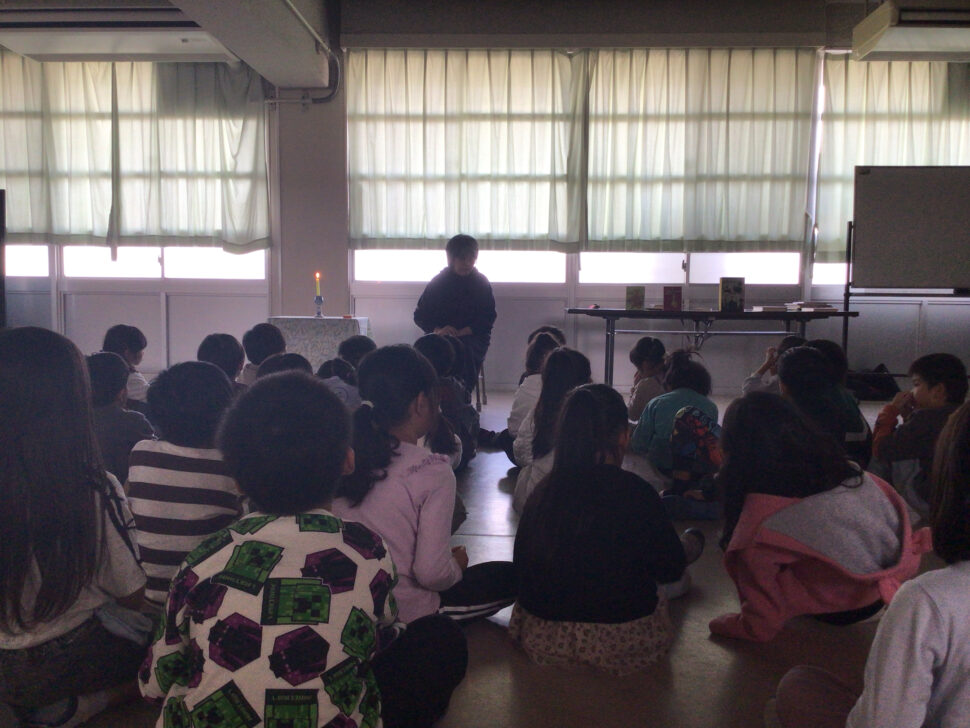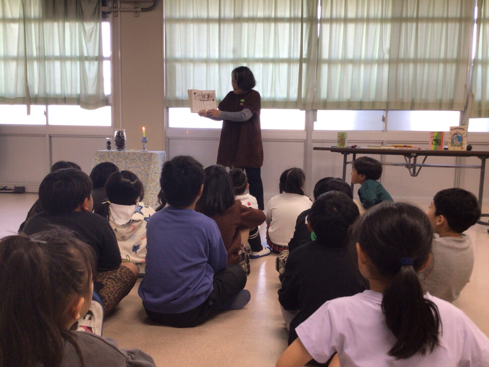 1~3年生を対象にやわたお話の会にきていただき、「お話の会」を行いました。