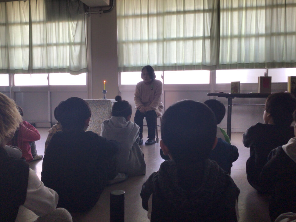 お話の会では、読み聞かせだけではなく、語り手の声に耳を澄ませてお話を想像します。