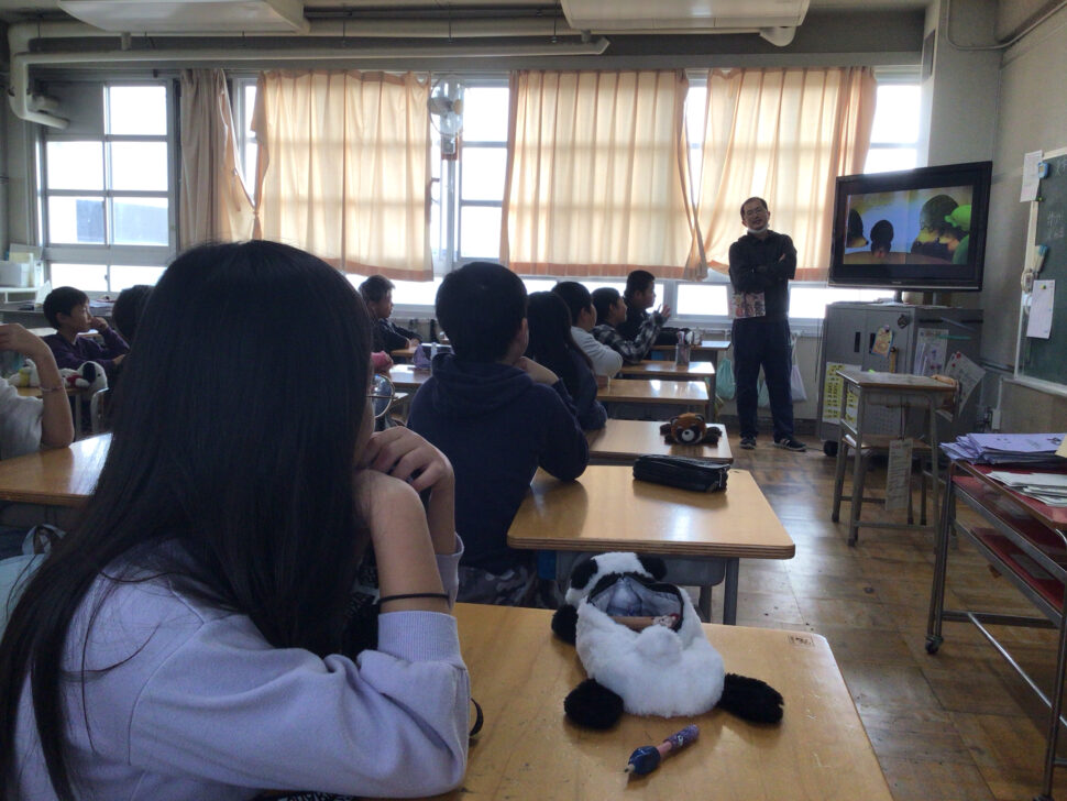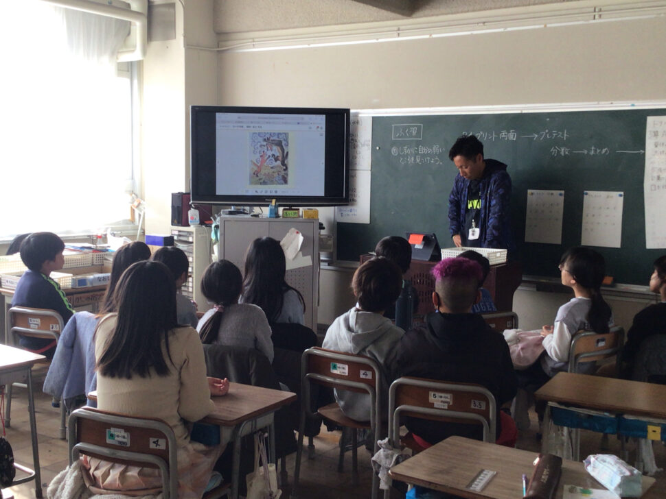 03.学校行事(中央タイムズ)国語モジュールの時間を使って担任の先生による読み聞かせを行いました。しかし、いつと違うのはとなりのクラスの先生に読み聞かせしてもらいました。