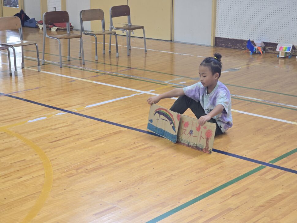 ゲームが上手く行ったり、成功すると一緒に喜ぶ姿が見られました。台本を読むのではなく自分の言葉で一生懸命伝える姿が見られました。