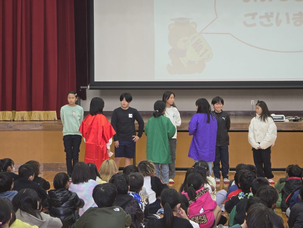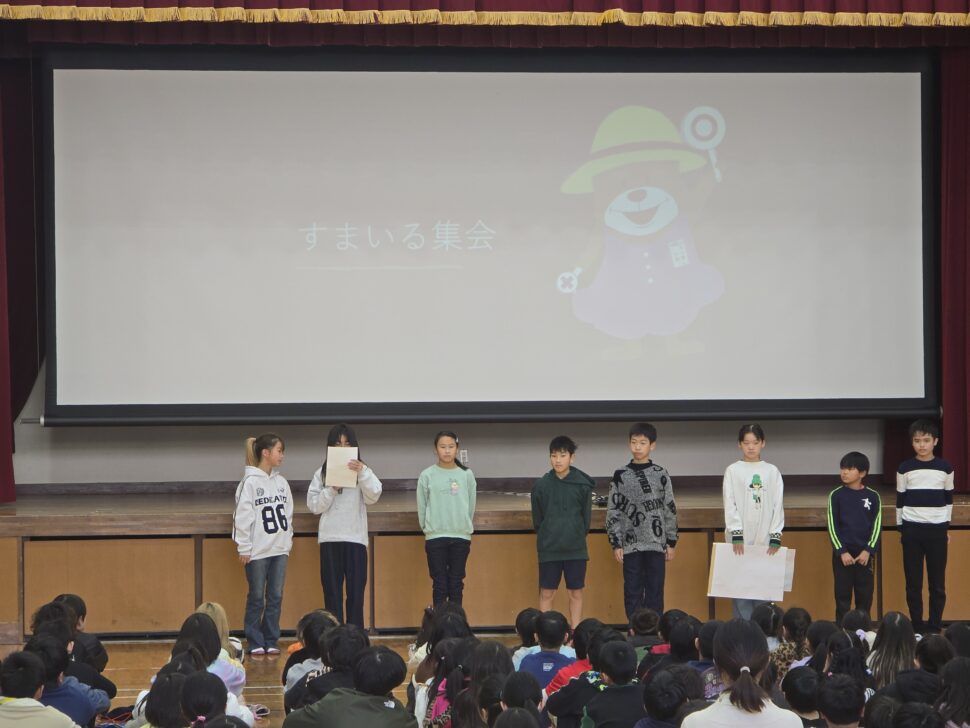 後期の委員会によるすまいる集会を行いました。今回は、児童会本部・学級委員会、図書委員会、体育委員会からの発表と家スター祭りが行われました。