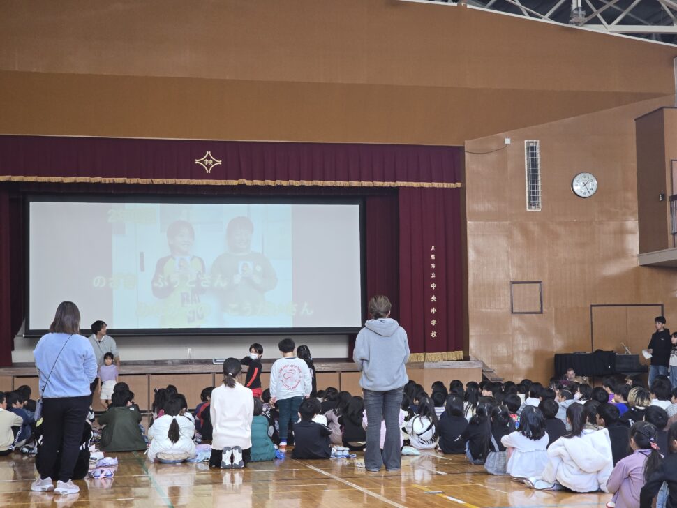 03.学校行事(中央タイムズ)後期の委員会によるすまいる集会を行いました。今回は、児童会本部・学級委員会、図書委員会、体育委員会からの発表と家スター祭りが行われました。