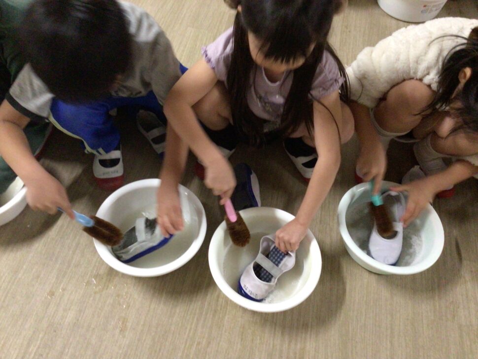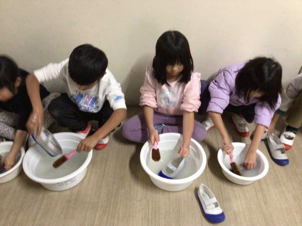 1年生は生活科の学習でくつあらいの体験をしました。気温がとても低い日でしたが、どの子も一生懸命洗っていました。