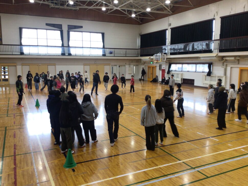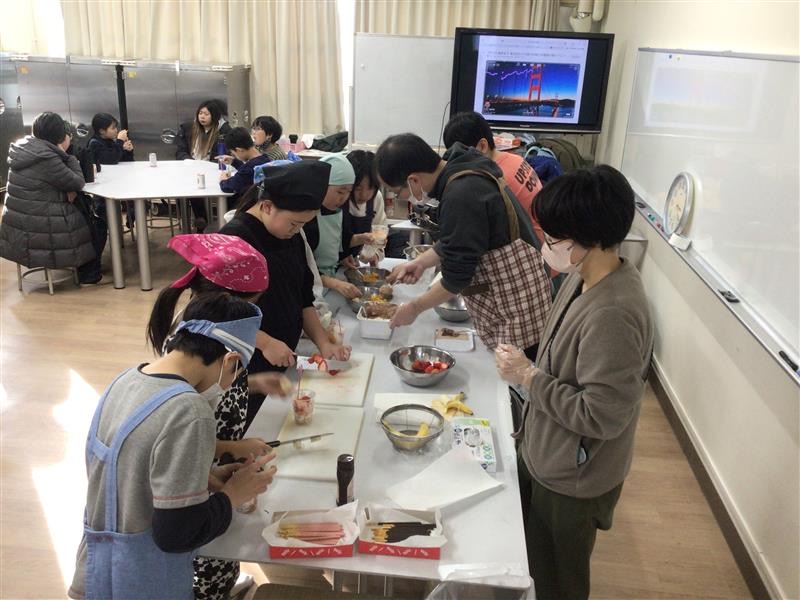 体育館でミニゲームをして、パフェ作りをしました。