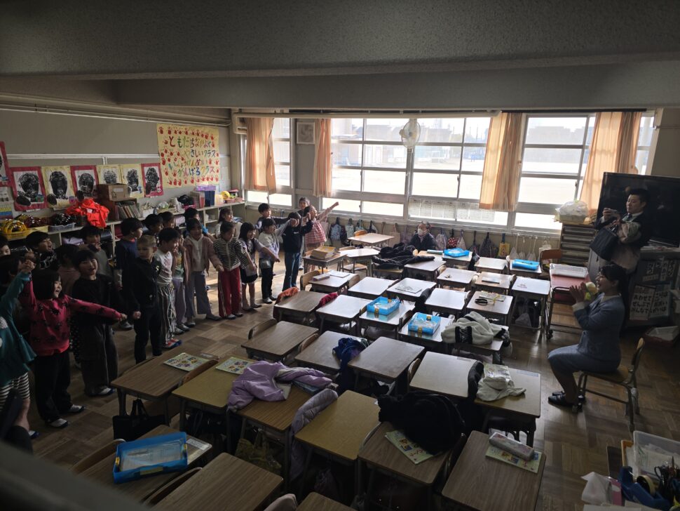 給食後はドッジボールをして遊び、最後に歌のプレゼントしました。