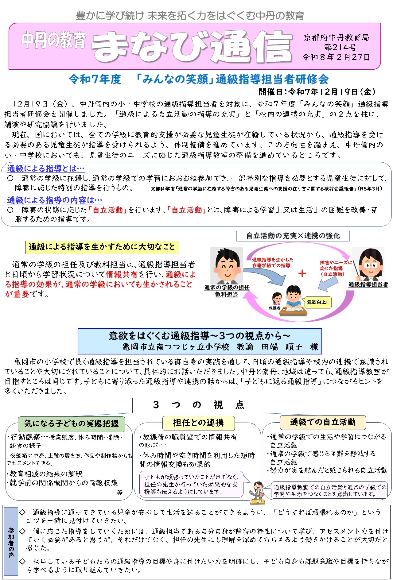まなび通信 第214号 令和8年2月27日 まなび通信 Twitter Facebook はてブ Pocket LINE コピー 2026.02.27 pdfファイルはここをクリック Post Views: 10