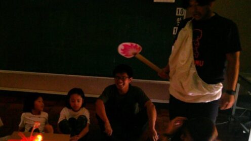 トピックス・News記事 遊びの指導 小学部6・7組は「キャンプだ ホイっ!」という単元で、キャンプを通した見立て遊びをしています。今日はあいにくの天気…になりましたが、教室が真っ暗なキャンプ場に様変わり‼そして、火の神様から火をもらってキャンプファイヤーがスタート!空を見... 2025.10.16 トピックス・News記事小学部