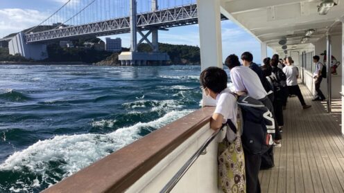 トピックス・News記事 高等部修学旅行15 イタリアのメッシーナ海峡、カナダのセイモア海峡と並ぶ世界三大潮流の一つである鳴門のうずしお。船の前をすごい勢いで流れていく海流に歓声があがっていました。これから帰路に着きます。淡路SAを出発する際に到着予定時刻をお知らせします。 ... 2025.10.17 トピックス・News記事高等部