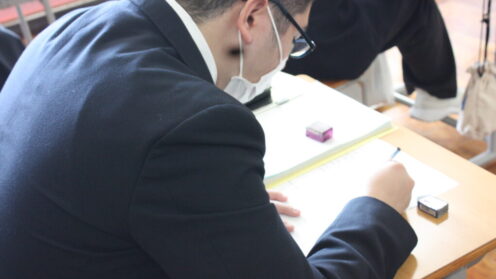 高等部7組では、一年間を振り返り自身で立てた目標の達成状況を振り返りました。また、今と以前の自分はどう違うのかどう成長しているのかをまとめる生徒もいました。この振り返りが、1か月後に迫る新年度に生きることを期待しています。