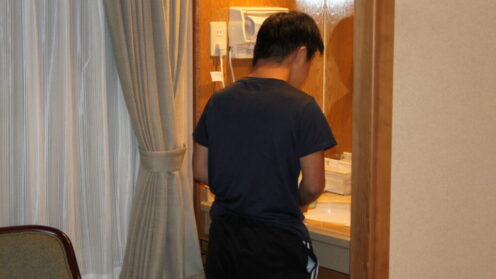 レクリエーションの後は、それぞれの部屋に戻って、明日の準備や振り返りを行いました。 その後は少し遊ぶのかな…と思いきや、長距離移動や見学・体験の疲れが出たようで、早々に布団に入りました。ゆっくり休んで、明日も一日、思いきり楽しんでほしい...