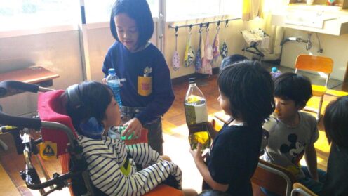 小学部2・3・6・7組はグループに分かれて体育を行いました。サッカーや玉入れを取り組んだグループでは、「10点入った!」と、自分の決めた目標を達成した児童や、うまくボールを蹴り、笑顔でハイタッチしていた児童など、児童達は目標を決めて頑張...