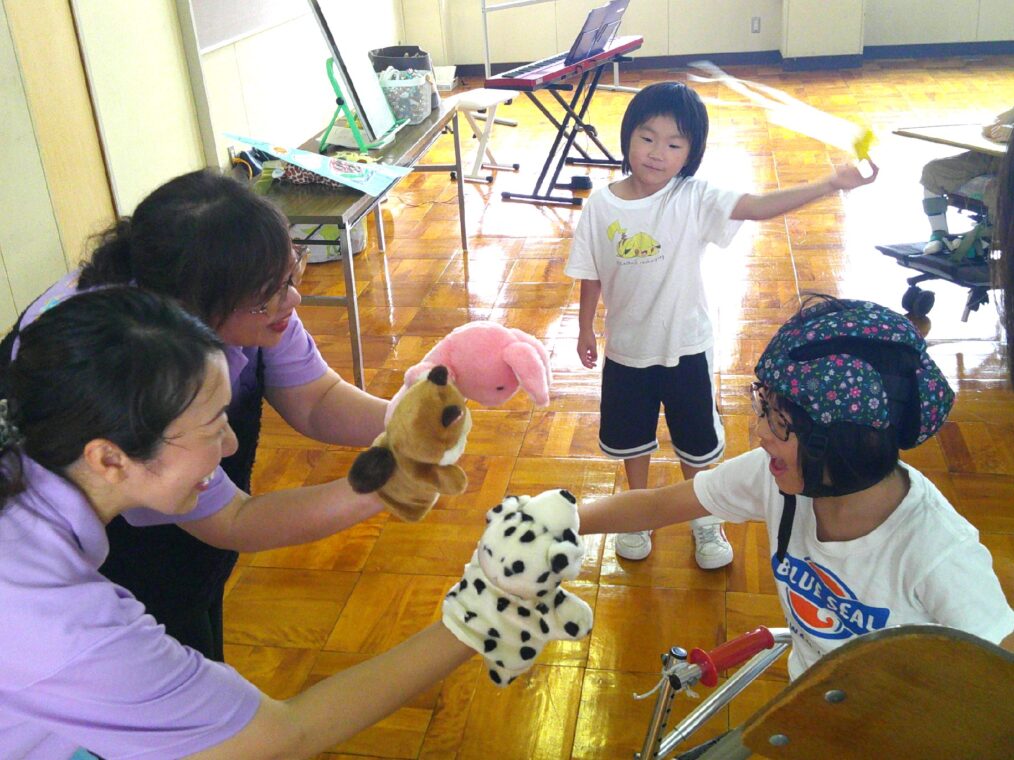 小学部低学年は、奥村楽器様にお越しいただき、おはなし会を行いました。英語や楽器等を使った読み聞かせに興味津々の児童達。「めっちゃ大きい!」「オーマイゴッド!」と、児童達は絵本の世界に入り込んでいました。また、リボンを使ったときには、友達の様子を見て同じようにリボンをくるくる回し、どの児童も思い思いのヘビを表現していました。あっという間の1時間、たくさんのお話を教えていただき、ありがとうございました!