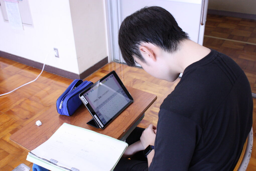 高等部9組では、自分新聞の制作に取り組んでいます。これまでの学校生活の思い出や成長記録等、自分に関係する事柄を集めようとワークシートを用いてメモ書きしタブレットに原稿を打ち込んでいました。思い出を原稿にしている生徒になぜそのように思ったのか問い掛けると自分なりの行事に対する思いや熱意を言葉にしていました。今後も自己理解を深め、良い新聞ができるあがることを期待しています!