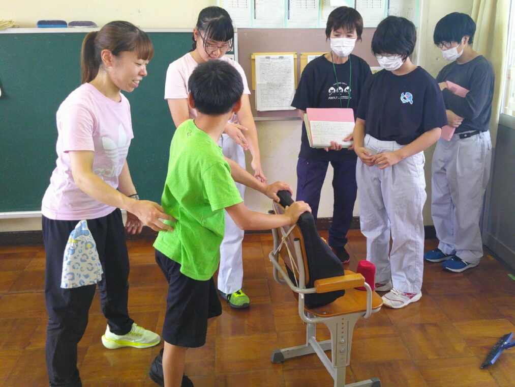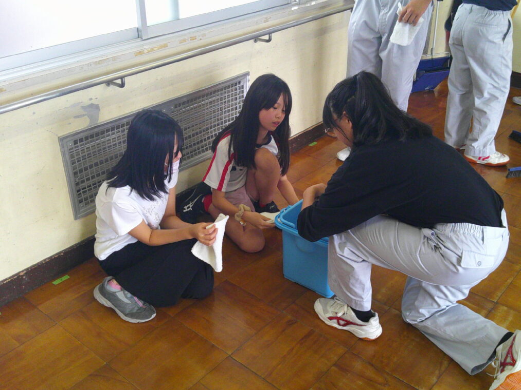 昨日から始まった小学部「ピカピカ週間」。8組の児童達は、高等部作業学習の清掃班の生徒達に、掃除の仕方について教わりました。丁寧にそして安全に掃除ができるよう、道具の使い方や机・椅子の運び方等を教わったり、「(清掃をする理由は)自分の将来(就職)のため。」と、将来についても語ってもらったりしながら、児童生徒達は集中して取り組んでいました。