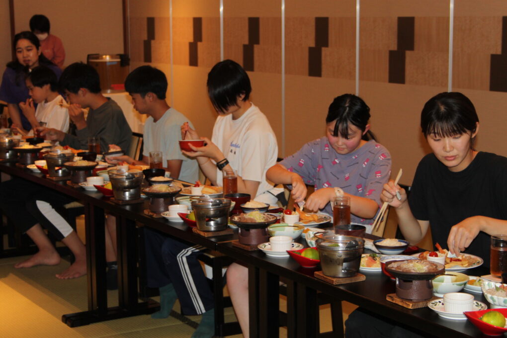 中学部修学旅行⑤ トピックス・News記事 Twitter Facebook はてブ Pocket LINE コピー 2025.10.01 ホテルオリーブに到着後、ホテルの方にあいさつをして入浴タイム。そしてお待ちかねの夕食。御覧の通り、豪華な夕食をおいしくいただき、みんな大満足です。夕食後はレクリエーションをしました。2択クイズや風船リレーなどで盛り上がりました。 Post Views: 307