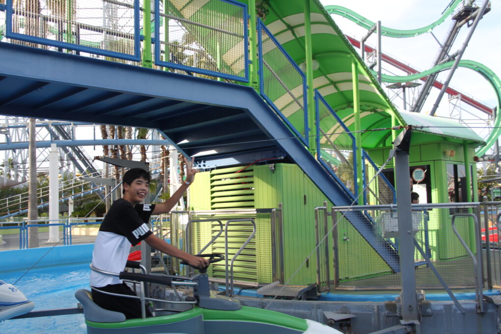 ナガシマスパーランドの午後はグループ編成を少し変更して楽しみました。いろいろな種類のジェットコースターやゆったりと乗ることができる汽車やゴーカートに乗りました。また、お化け屋敷にも入ってスリルを味わいました。とても充実した1日でした。