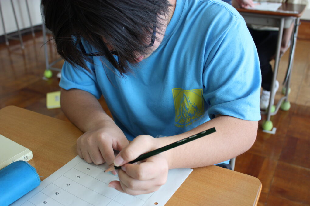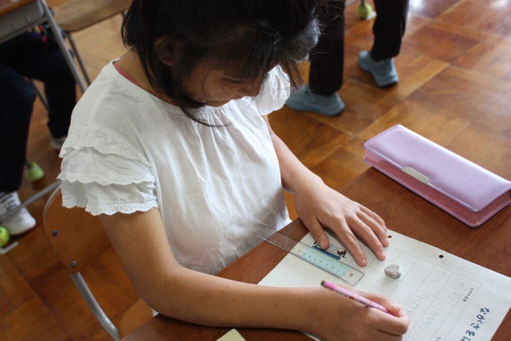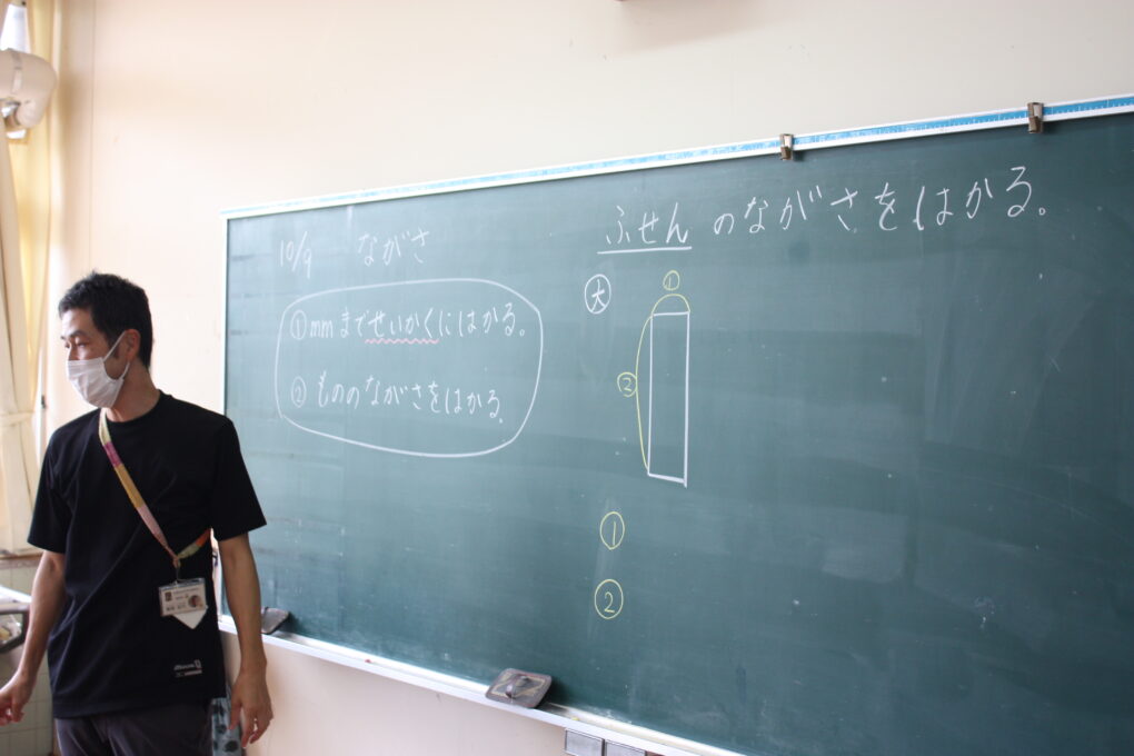 高等部3,4組の数学では、長さについて学習しています。定規を使ってmmまで正確に測ることを目標に物の長さを計測しました。長さを測る中で、物には縦横があることに気付き、物の向きにも気を付けながら計測を行いました。mmの小さな目盛りを読み取ることに苦戦しながらも、粘り強く答えを出している生徒達でした。