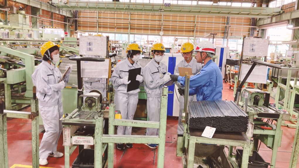 高等部2年生で企業に就労を希望している生徒を対象に、企業見学を行っています。今回は、金属加工、製造を行うサンキン株式会社を見学させていただきました。参加した5名の生徒達は、担当者様による製造機器の説明等を集中して聞き、積極的に学ぼうとする様子が伺えました。今回の見学を含め、複数の企業を見学する予定にしています。見学を通して学びを深め、希望進路の実現に向けて取り組んでいきます。