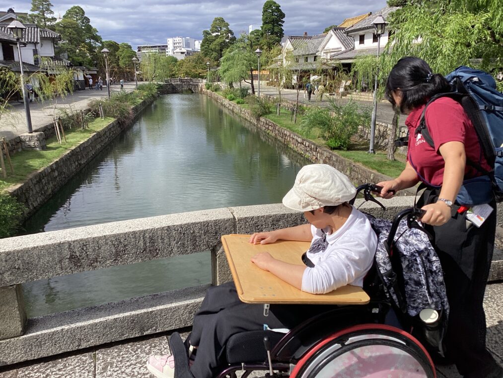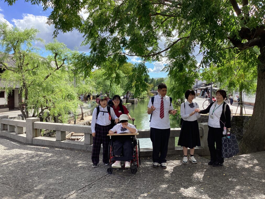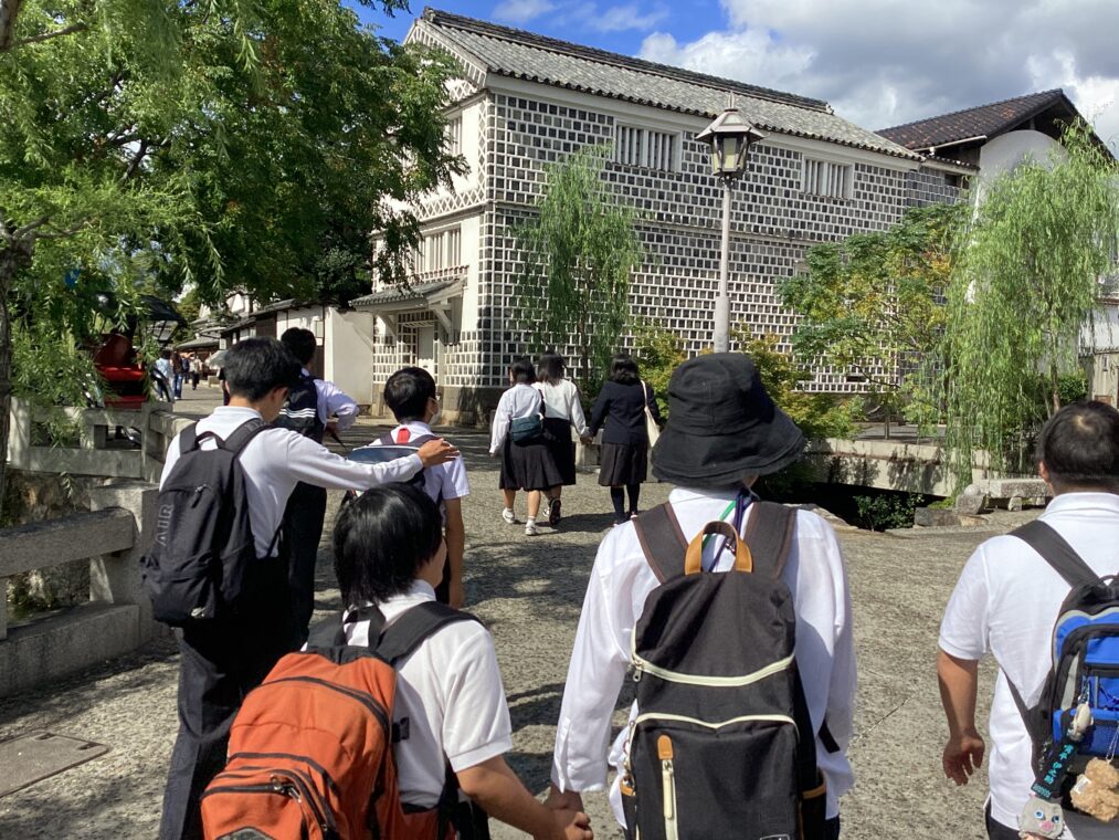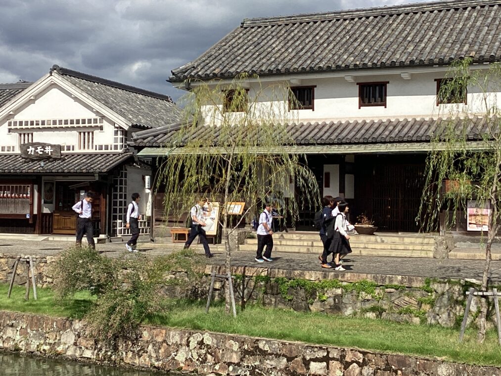 昼食を終えた班から美観地区の散策を行いました。倉敷美観地区は、江戸から明治時代の風情を色濃く残す、岡山県倉敷市の歴史的観光エリアです。おみやげを買ったり、白壁の蔵屋敷や柳並木が並ぶ美しい町並みの写真を撮影したりして過ごしました。この後は四国水族館に移動します。