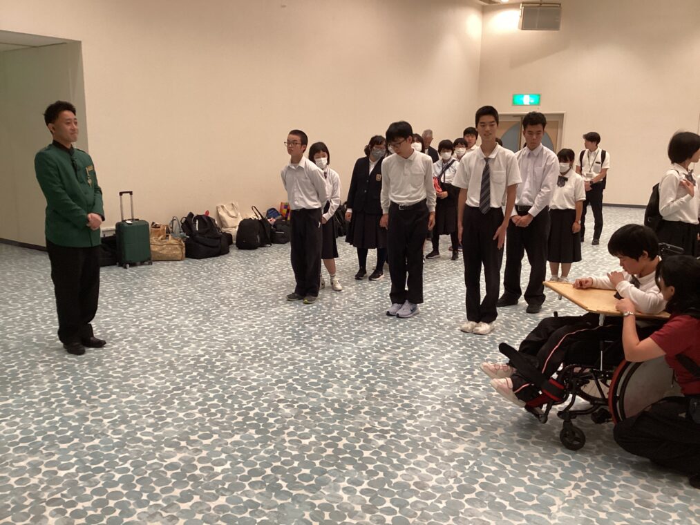高等部修学旅行➄ トピックス・News記事 Twitter Facebook はてブ Pocket LINE コピー 2025.10.15 ホテルに到着後、お世話になる従業員の方への挨拶を済ませ、説明を受けて部屋に入りました。夕食はみんなが楽しみにしていたバイキング!お皿からはみ出そうなくらいの料理を食べる生徒達。高校生の食欲にびっくりです。 Post Views: 91