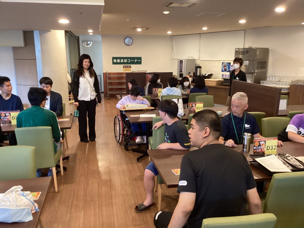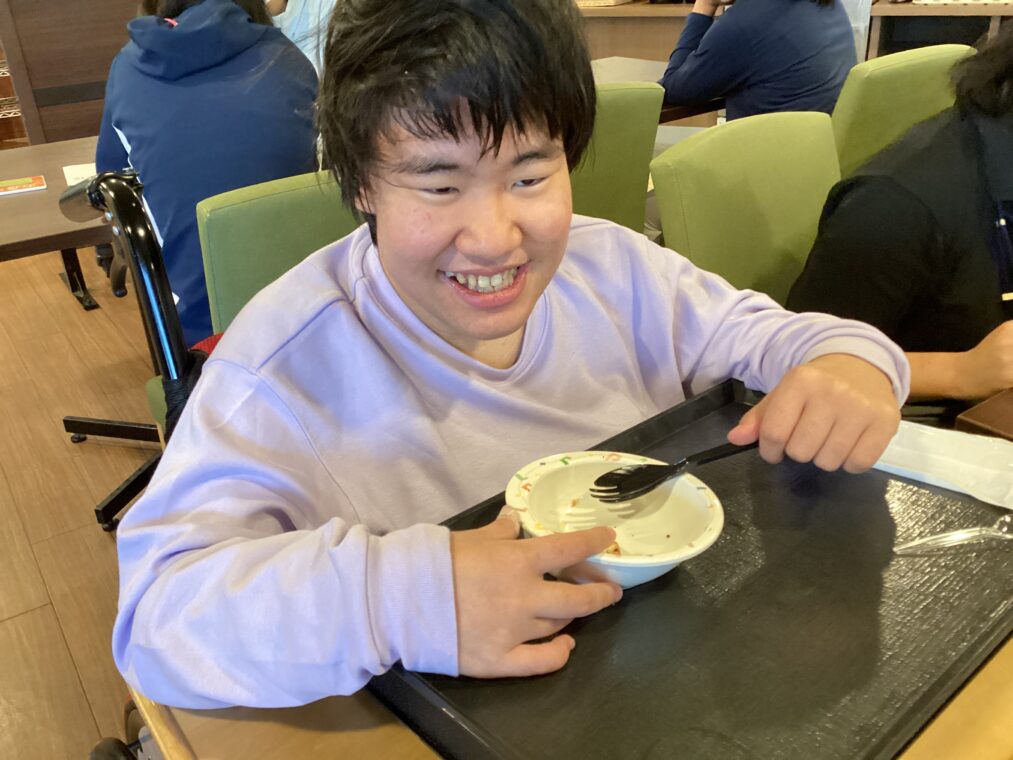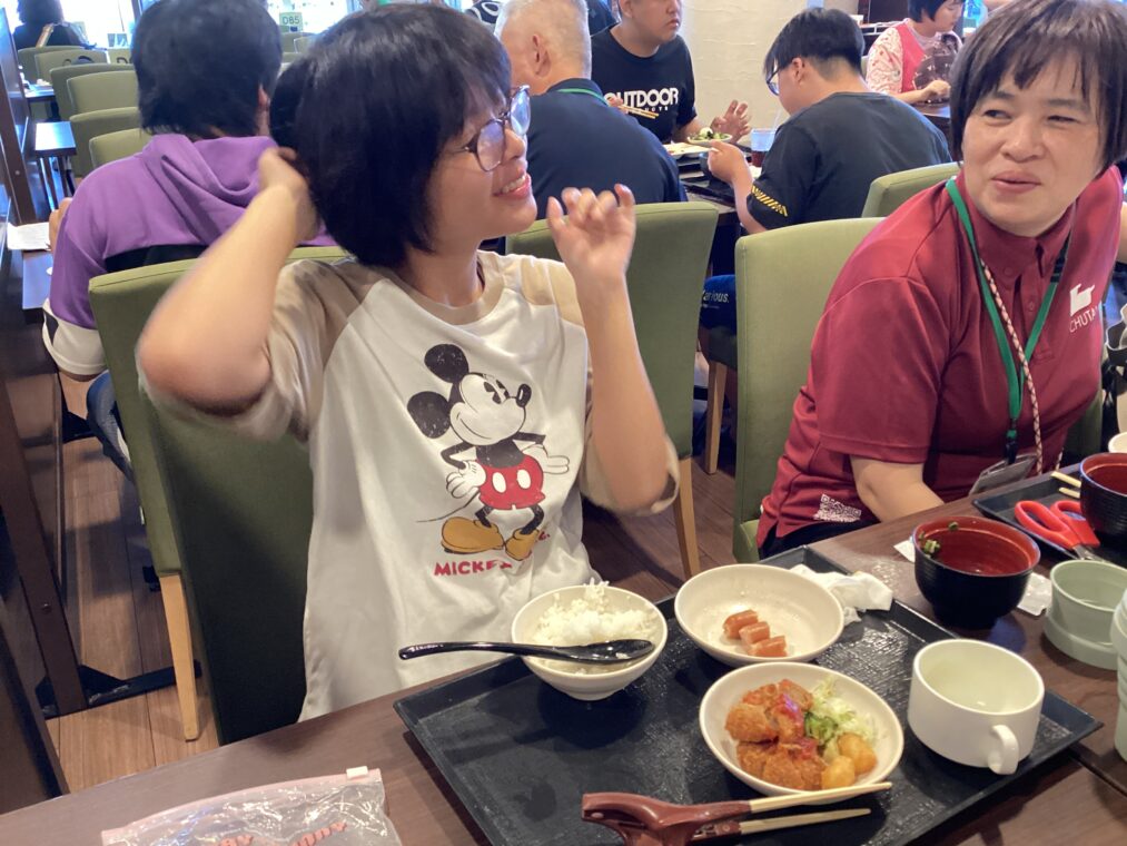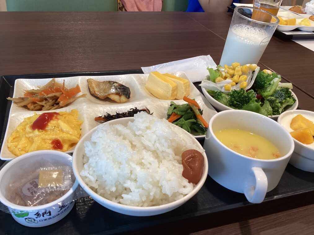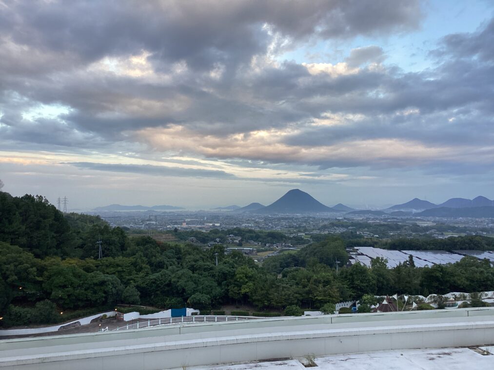 おはようございます。2日目がスタートしました。ホテルの部屋からは、瀬戸大橋が遠くに見えています。今日の予定は、午前中に中野うどん学校、午後はレオマワールドです。心配された雨も今は降っておらず雲の合間には青空も見えています。全員元気に朝食バイキングを楽しんでいます。