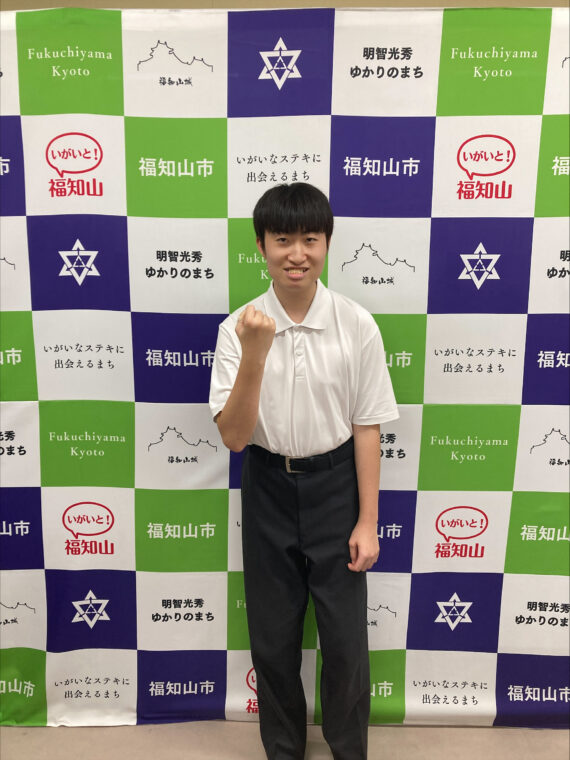 10月25日(金)~27日(日)の日程で開催される「全国障害者スポーツ大会滋賀大会」で水泳の部に出場する生徒が10日(金)、福知山市役所で行われた激励会に出席しました。対談の中では、これまでの練習の成果を発揮すると意気込みを語り、記念品をいただきました。大会は、月末に開催されます。持てる力を発揮していい結果を残せるようがんばりましょう!