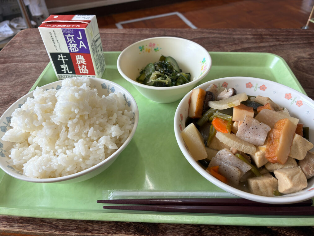 本日、以前投稿した記事でもお伝えしたとおりEARTH FOODS25の中から11種類の食材を使用した万博献立の給食を提供しました。メニューは、ごはん、高野豆腐のふくまめ煮、梅肉和えの献立でした。また、昼休みの生徒会Radioでも前回に引き続き中学部4組の「ミャクミャクTV」の生徒によって献立の紹介をしてくれました。児童生徒達も食材に関心をもちながら笑顔で食べていました。