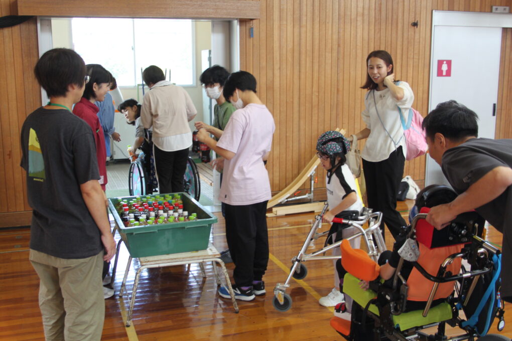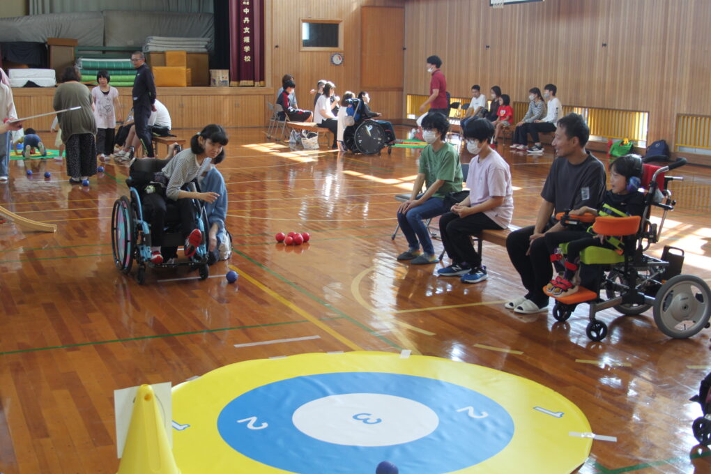 PTAの親子レクリエーションでボッチャ大会を開催しました。参加者を8チームに分けて総当たり戦を行いました。一投一投に大きな歓声が上がります。最後に参加賞のジュースをもらって終了しました。ボッチャを楽しみながらPTAの横のつながりを強めることができた親子レクとなりました。