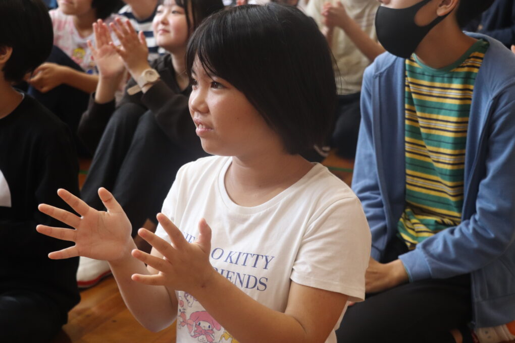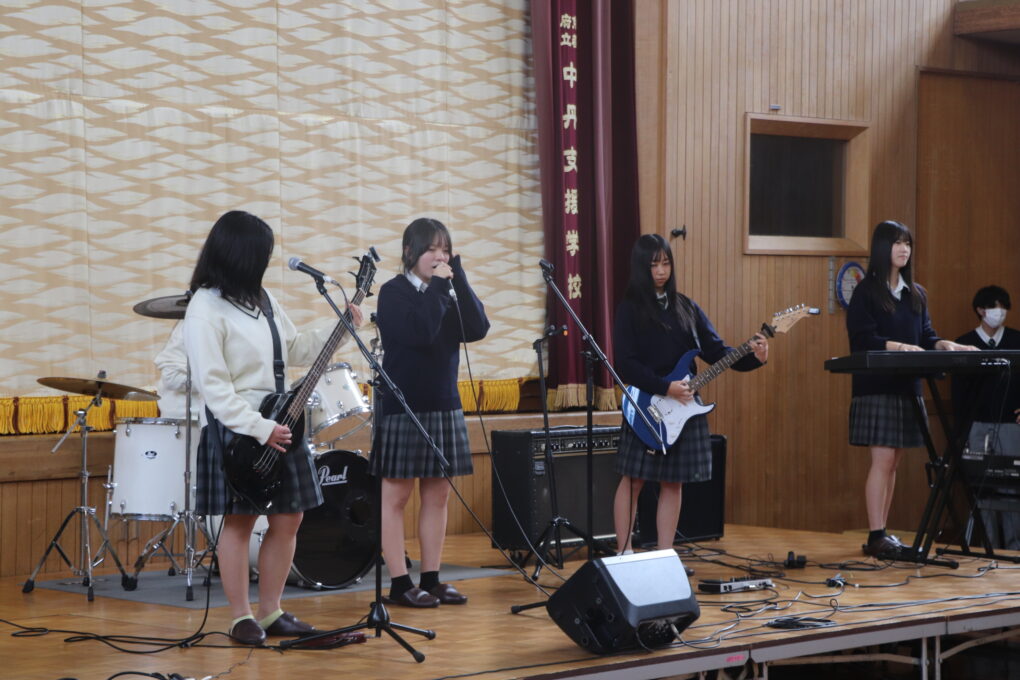 綾部高校軽音楽部のライブ演奏は昨年度に続いての取組で、開演前からとても楽しみにしている児童生徒たち。開演すると学校の授業では体験することできない歌声や音色に大興奮!曲に合わせて歌を歌ったり体を揺らしたりして、ライブ演奏を楽しみ、あっと今に終わった1時間となりました!