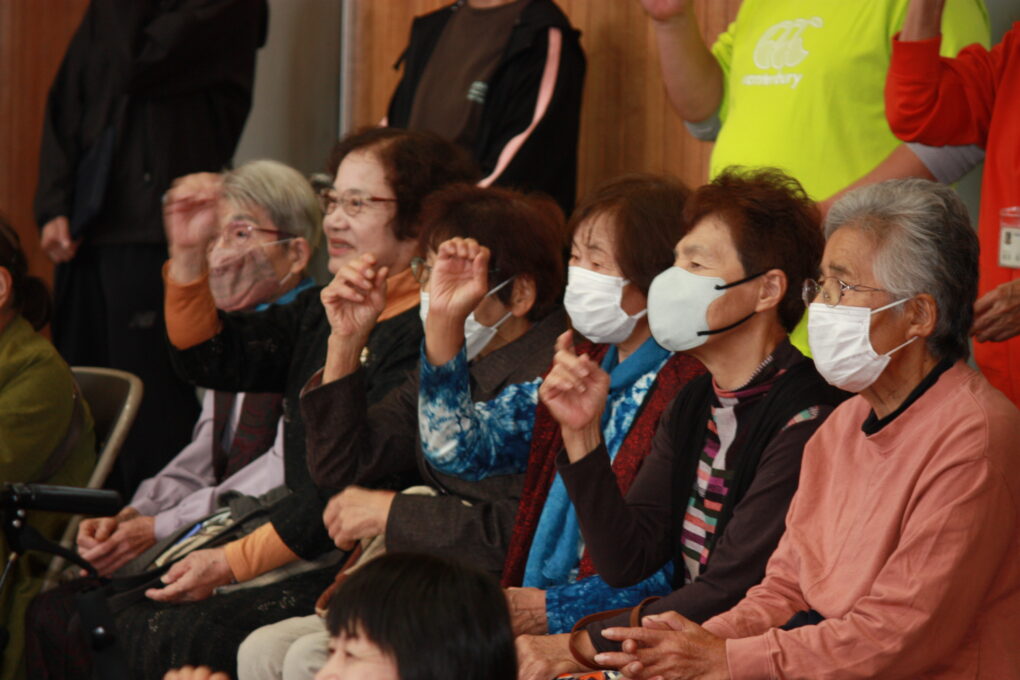 今日はCCSプロジェクトとして、芸術鑑賞会「みんなのハッピーミュージックアワー」を実施しました。これまでダンス教室でお世話になっていましたKATSUさんを始め、ジャグリングやマジック等のパフォーマーの皆さん、North Kansai JAZZ Streetより美市川さん、また地域の方にもお越しいただき、芸術鑑賞会を開催しました。