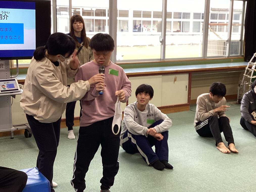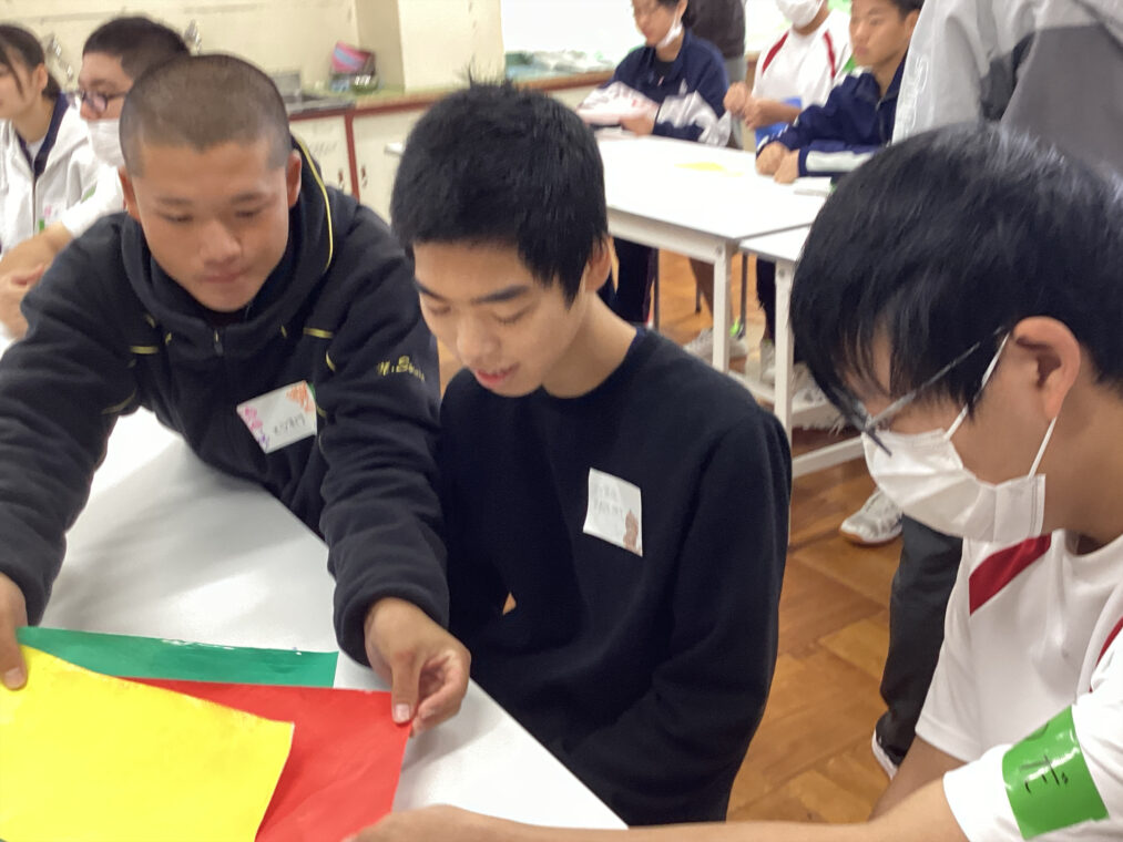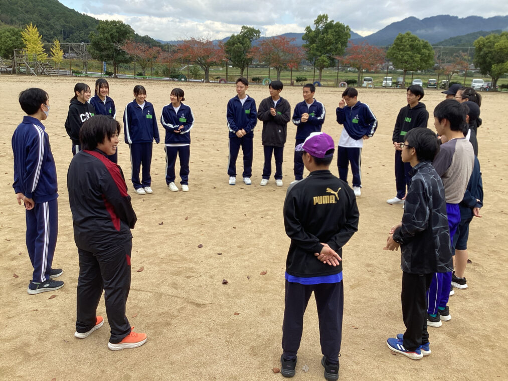 10月29日、今年度二回目となる京都府立綾部高等学校との交流及び共同学習を実施しました。今回は本校を会場にして、前回の交流同様にスポーツ専攻コースの2年生38名が来校して交流を行いました。内容は、課内クラブ活動「ハイチャレ」を通して、グループごとに交流を深めました。どのグループでも、序盤から会話をしたり前回の交流を振り返ったりして、互いに積極的に交流をすることができました。全体会を終えると、各グループの活動場所へ。大型作品の作成、Tボール、リアル野球盤、地域散策等の活動の中で、有意義な時間を過ごすことができました。あるグループでは、休憩時間に校内見学をしようということになり、本校生徒が主体となって校内を巡りながら案内している姿に、互いを理解し合うという交流の大切さを感じることができました。今回の交流で深めた仲を地域社会の生活でも発揮することに期待をしています!