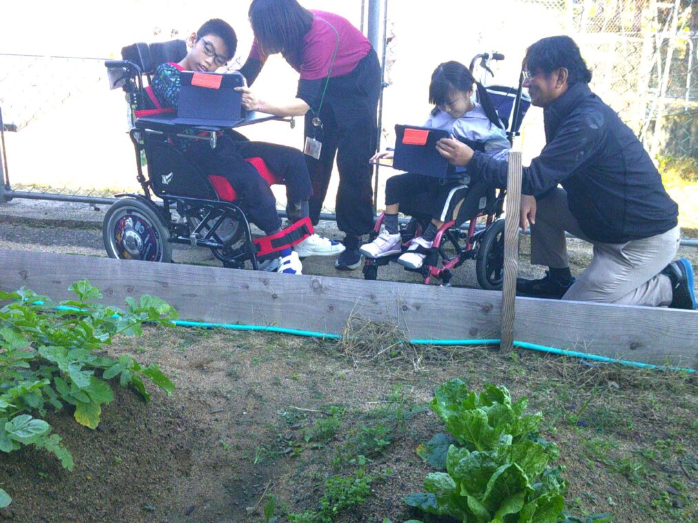 トピックス・News記事小学部1組では「ベジタブルガーデン」という単元で、冬野菜を育てています。大根が少しずつ太くなってきましたね!写真も撮り、みんなが植えた野菜の成長を確かめ合いました。