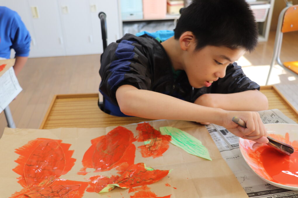 美術 トピックス・News記事 Twitter Facebook はてブ Pocket LINE コピー 2025.11.06 秋が深まるにつれて色づき始めた紅葉に合わせて、中学部では、学級に掲示している花の入れ替えを行いました。取り組んだ生徒たちは、線に沿って丁寧に形を切り抜き、筆を使って葉の隅々まで色を付けることができました! Post Views: 68