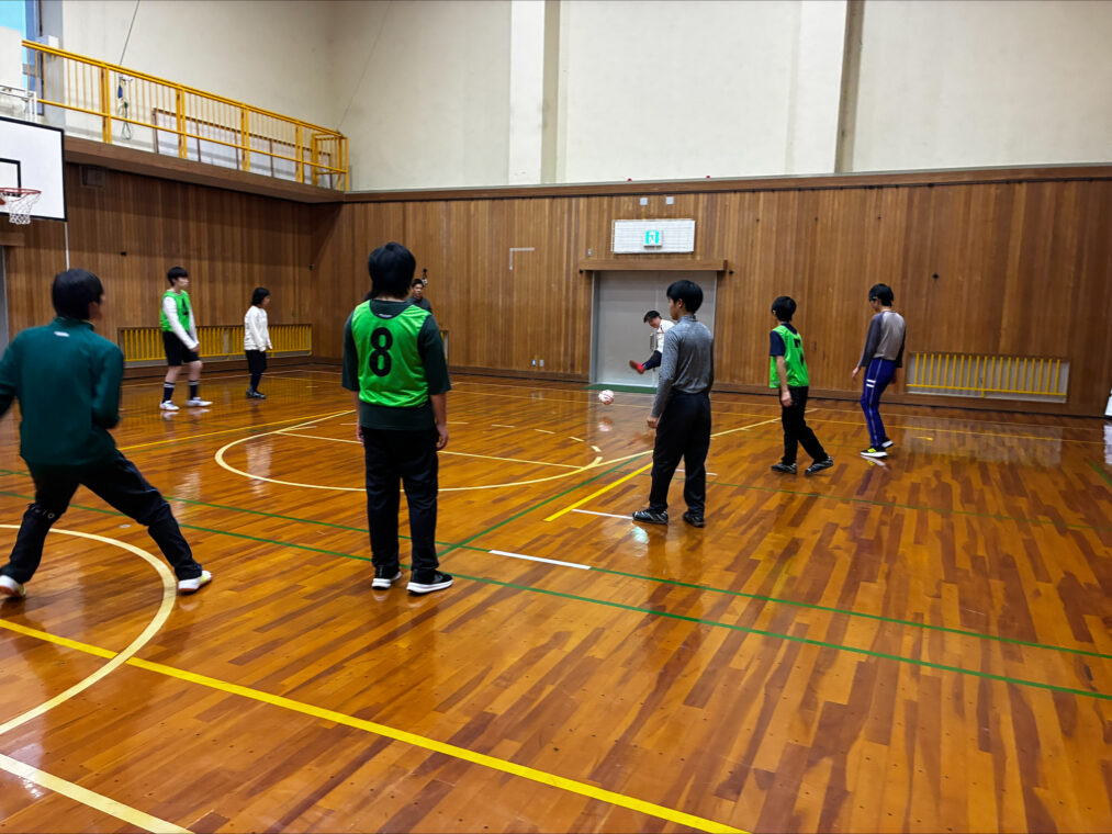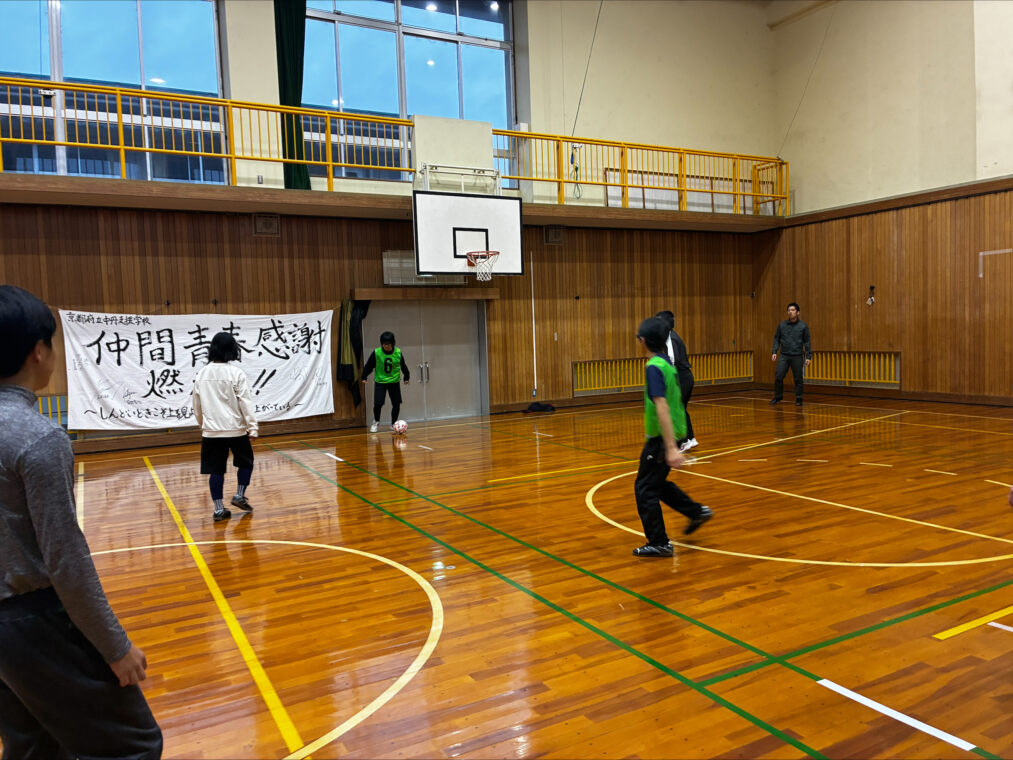 全京都障害者総合スポーツ大会が終え、部活動もフットサル部のみの活動となりました。部員の生徒達は、次なる目標に向けて練習を重ねています。本日はスペースを見つけパスを回し続けることを目標にゲーム形式で練習を行いました。ボールに集まらないように、視野を広げて取り組み汗を流していました。