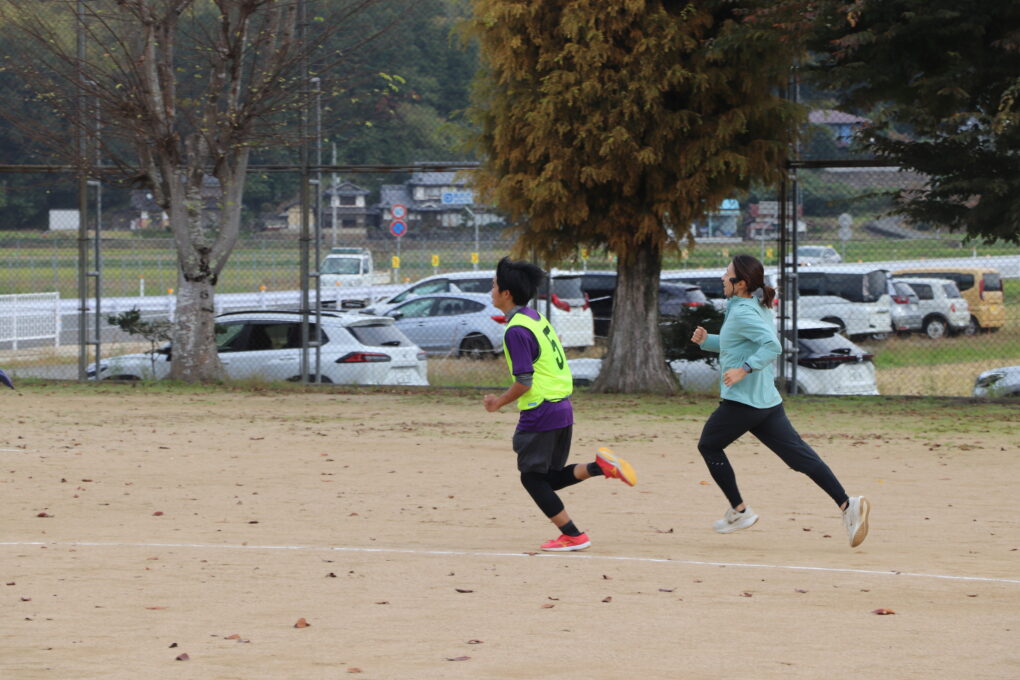 陸上教室ではウォーミングアップから新聞紙やマーカーを使い、チームで競い合うなど目的をもって意欲的に体を動かすことができました。ウォーミングアップの後は、走り方や走る際の姿勢について、実演を交えながら教えていただき、その場で実際に挑戦しました。最後の時間走では、1分から3分の間で、木崎さんと一緒にグラウンドを走り続ける練習を行いました。最後の3分間走では木崎さんと競い合いながら走る生徒も!とてもよい体験になりました。