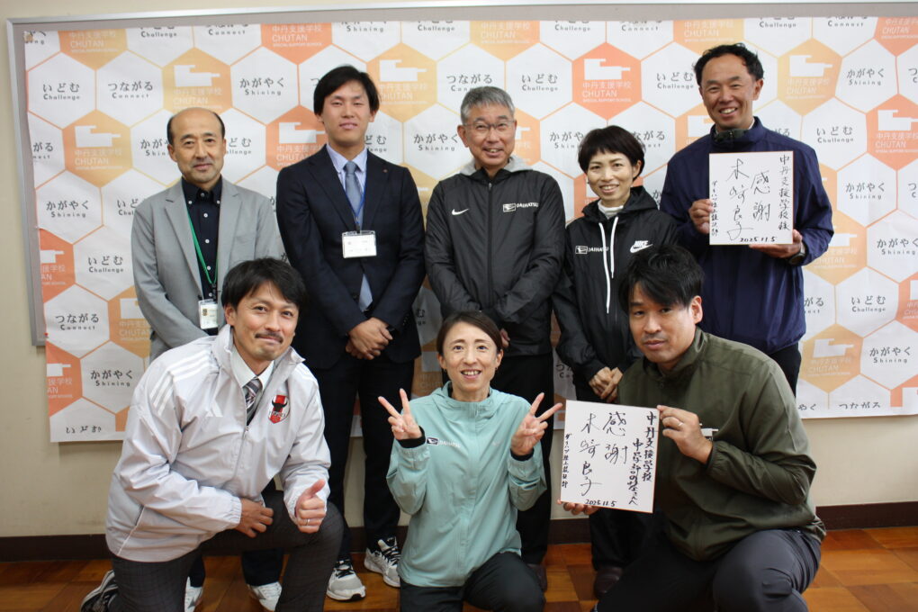 京のスポーツ夢バンク事業でダイハツ陸上競技部の木崎良子さんにお越しいただき、中学部の駅伝大会に向けて陸上教室を実施しました。