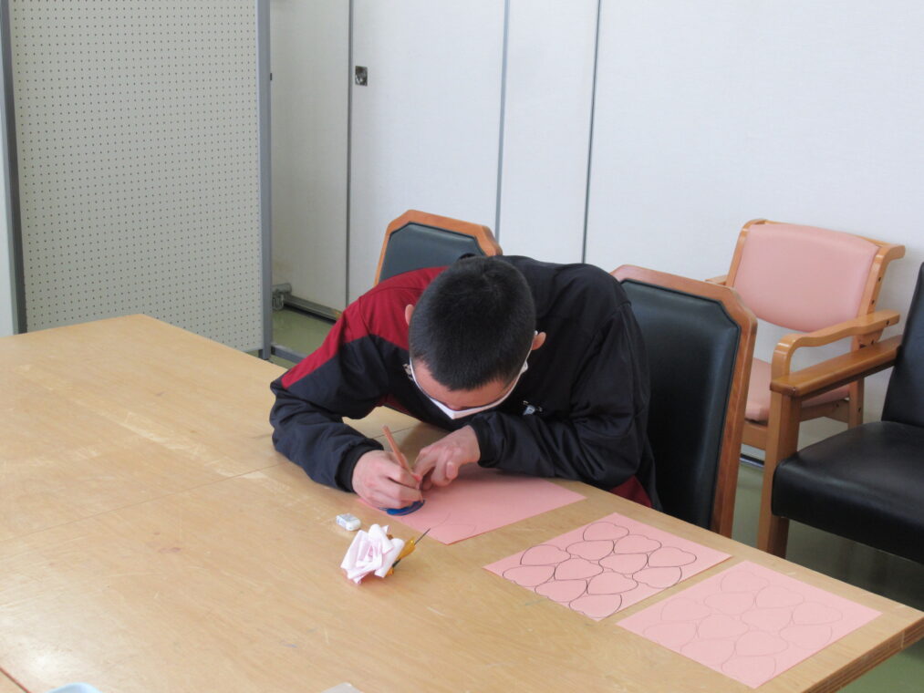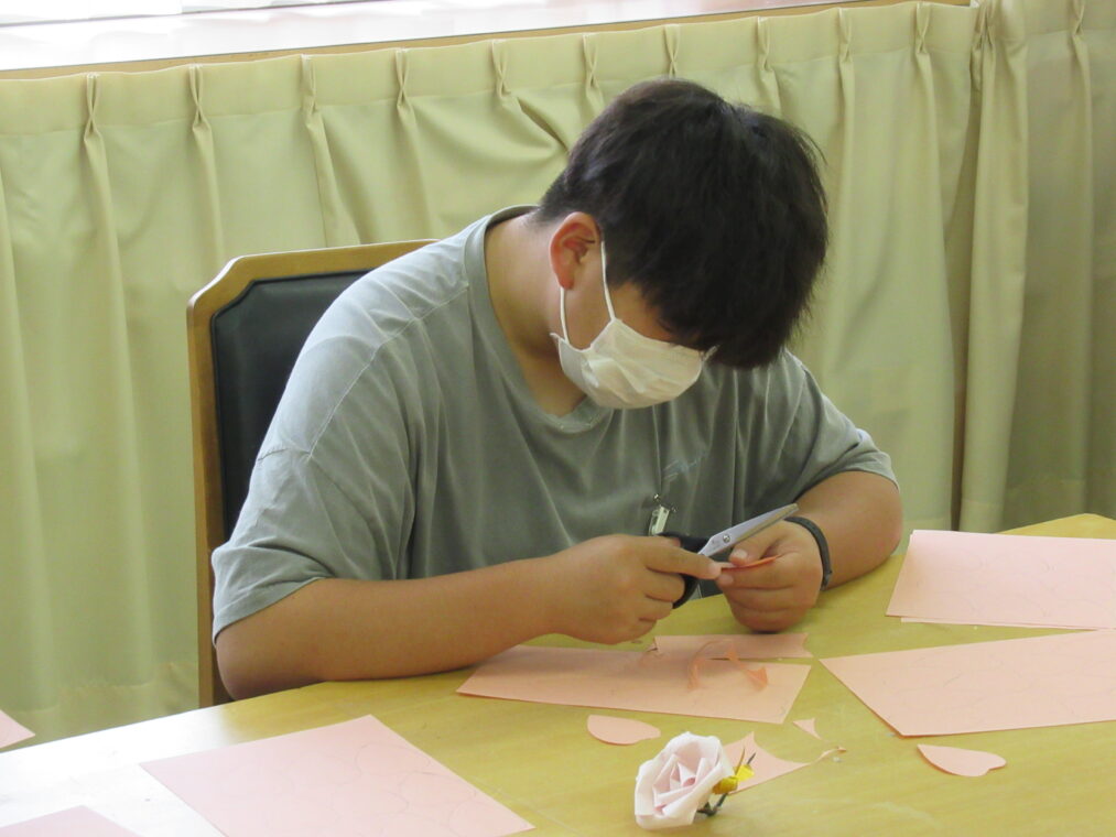 18日、高等部1年生を対象に今後の進路選択に役立てるため福祉事業所体験を実施しました。体験を行う15名の生徒は、それぞれの作業スキルや実態に応じた4つの事業所に分かれて体験しました。卒業生も多く働く「ふくちやま作業所」では、作業所内での過ごし方を知ることを目的に所内の方々と一緒に体操や運動をしました。「ちくもう」では、手工芸として取り組んでおられる花びらづくりの体験をさせていただき、就労移行A型の「ナイン福知山」「栄」では、チラシ折りや海老芋の皮むき、タオルたたみ等、多岐に渡る内容の仕事を体験させていただきました。生徒達は真剣な表情で、環境が変わっても積極的に取り組もうとする姿が伺えました。今回の経験を今後の進路学習につなげていきましょう!「ふくちやま作業所」「ちくもう」「ナイン福知山」「栄」の関係者の皆様、本日は貴重な体験を作ってくださりありがとうございました。