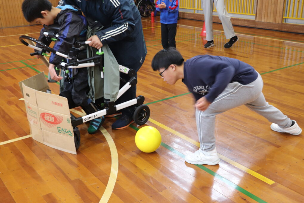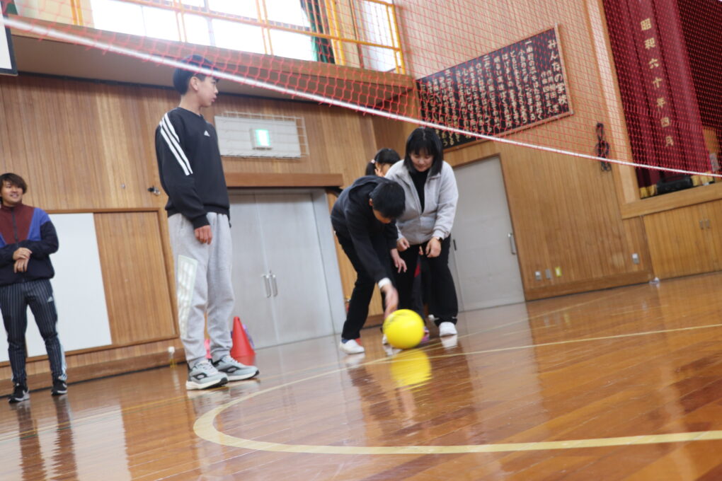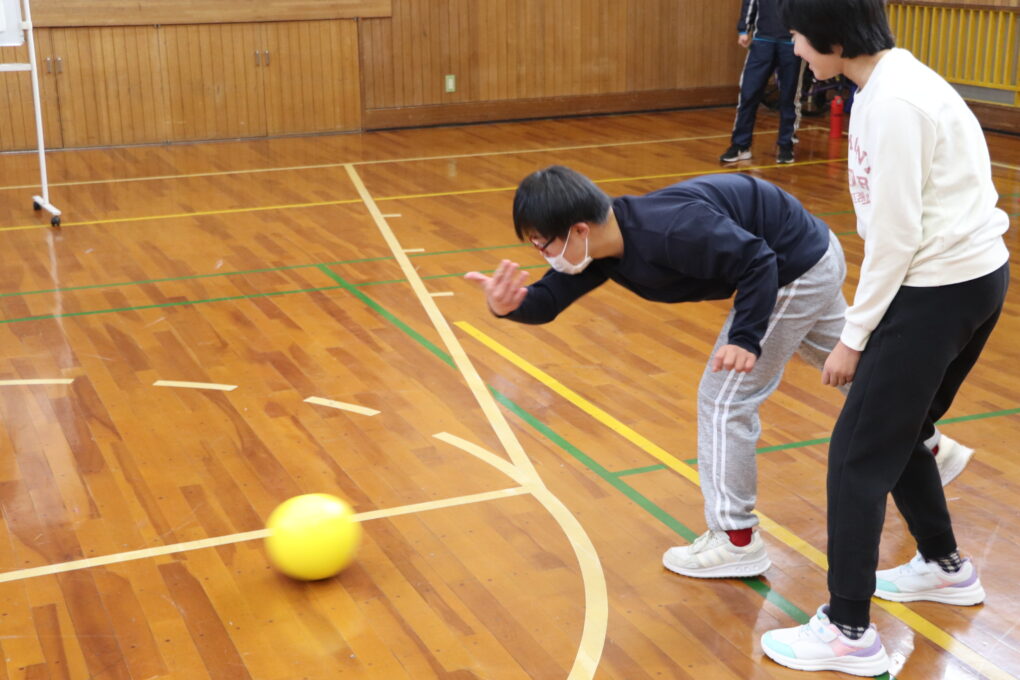 中学部3~5組では、これまでの授業でフロアバレーボールに繰り返し取り組み、最終日に学級対抗の大会を行いました。