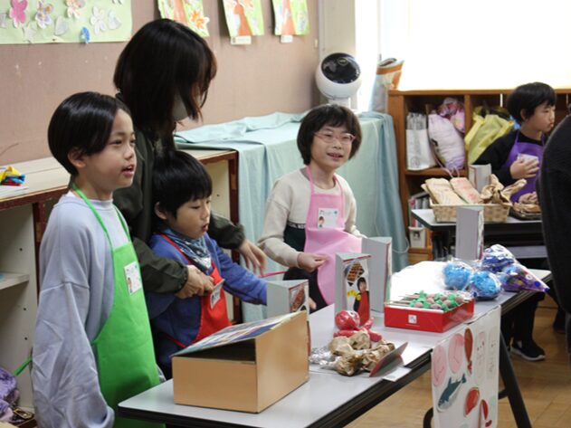 小学部は『ちゅうたんモール』と題して各学級・グループで各ブースを作り、保護者の方々にご来店いただきました。これまでの学習で学んできたこと(過去の記事はこちらから→ ① ② ③ ④ ⑤ ⑥⑦ ⑧⑨ )を存分に発揮し、保護者の方々も「楽しかったです!」「とっても素敵なお店で、工夫が凝らしてあってよかったです。」等、笑顔で話されていました。『ちゅうたんモール』の目標「みんなをえがおにしよう!」、達成ですね!