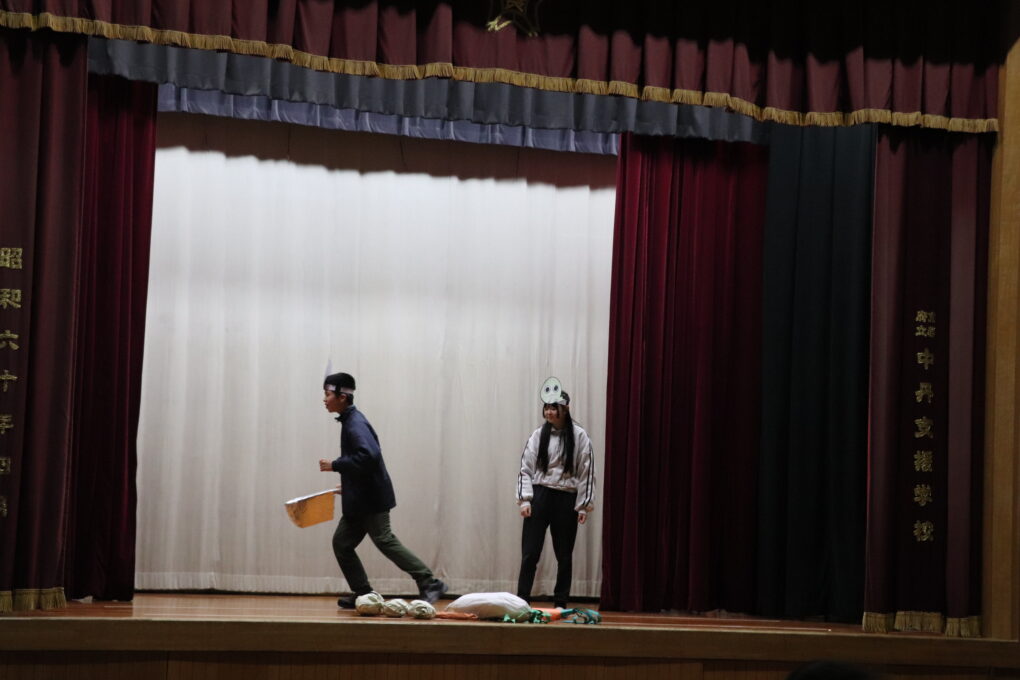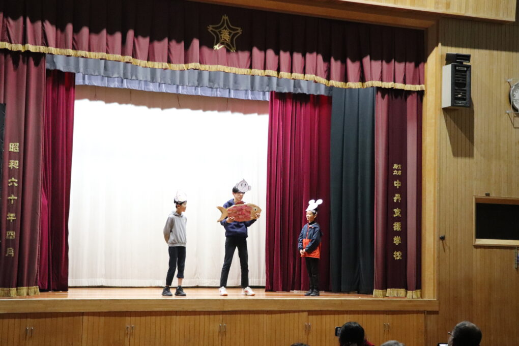 当日は多くの保護者の方等の前での発表で緊張した様子でしたが、生徒たち自身が製作してきた小道具等を使い、練習してきたとおりにそれぞれの役割を果たすことができました。本当によく頑張りましたね!